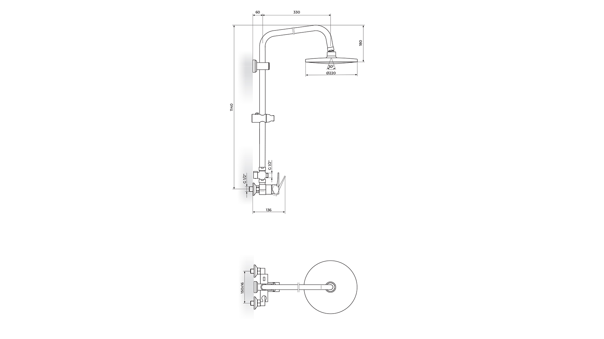 - Zglobna tuš ruža D. 220m - PTRUSP70